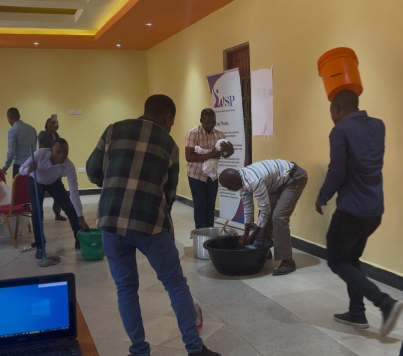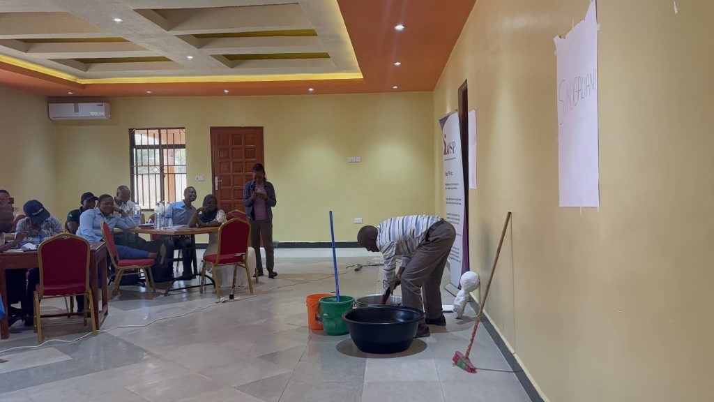 One of the most powerful moments of the training occurred during a role-play exercise led by Dr. Flora Myamba. Six male LGA participants acted out a scene where they performed tasks like fetching water, sweeping, cooking, washing, mopping, and holding a baby.